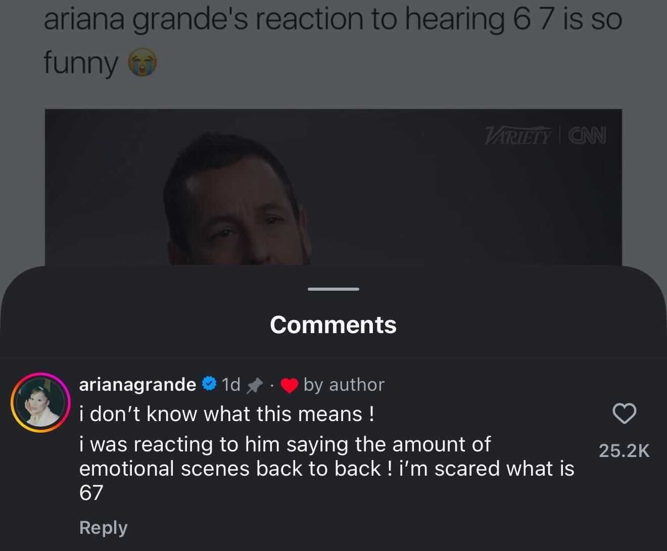 Ariana Grande has become the latest Wicked: For Good cast member to become a viral meme - and it has to do with '67'.