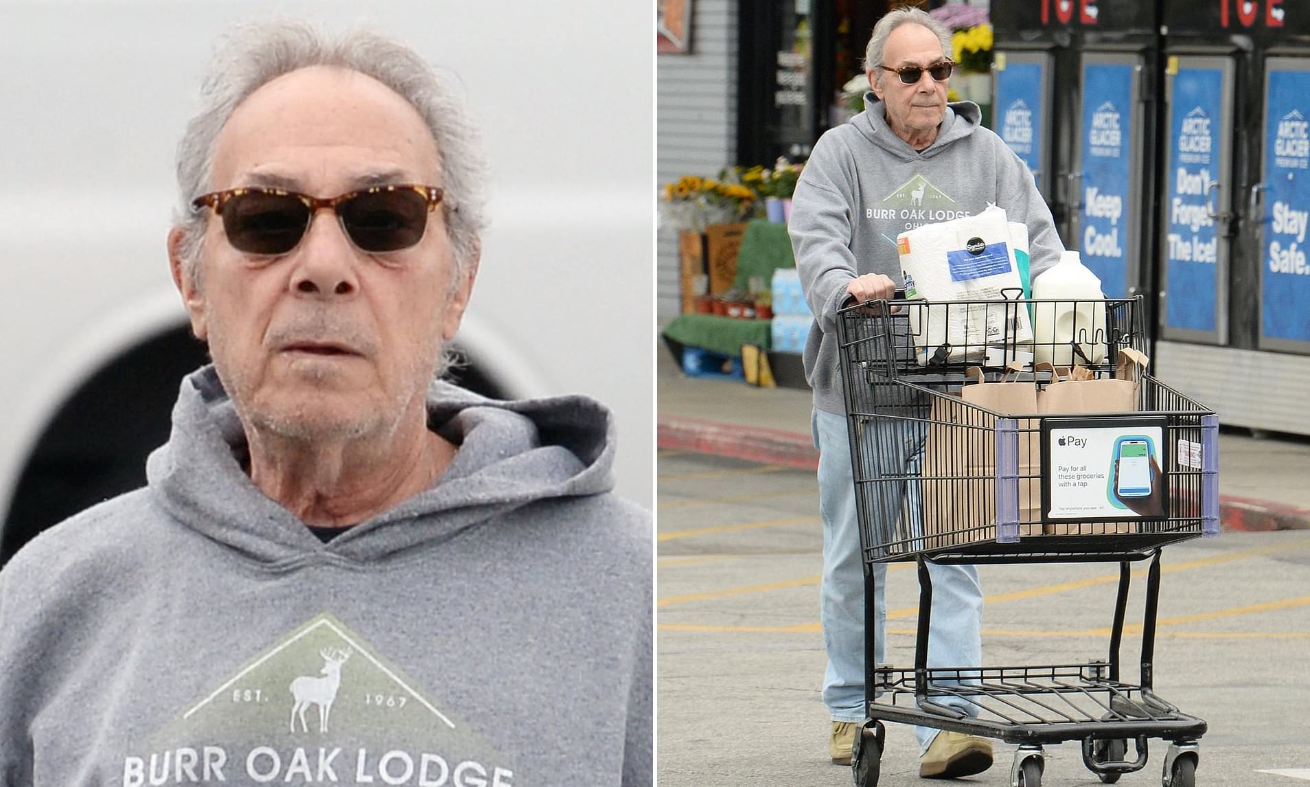 Now aged 69, he was glimpsed this week looking sprightly as ever as he surfaced for a grocery run in a casual ensemble of jeans, a hoodie and tortoiseshell shades.