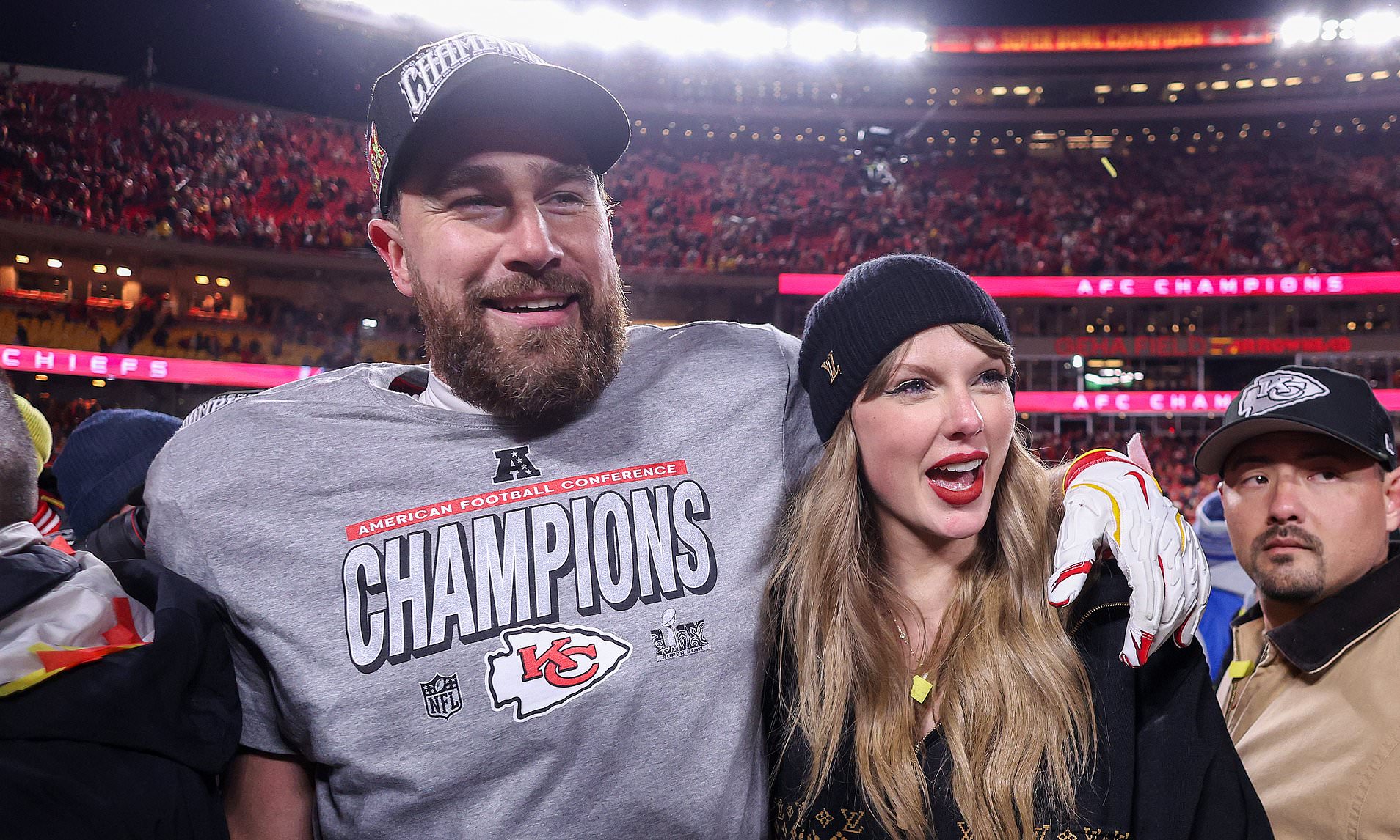 'Let's just give it up for Taylor real quick,' he said to his brother, Jason, as they clapped. 'She's done it again. She's put the world on tilt.'